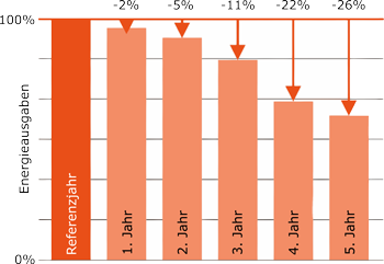 Am Ende jedes Messungsjahres werden die Energieeinsparungen im Verhältnis zum Verbrauchsreferenz-Wert kalkuliert, indem sie den Klimaveränderungen der betroffenen Periode angepasst werden.